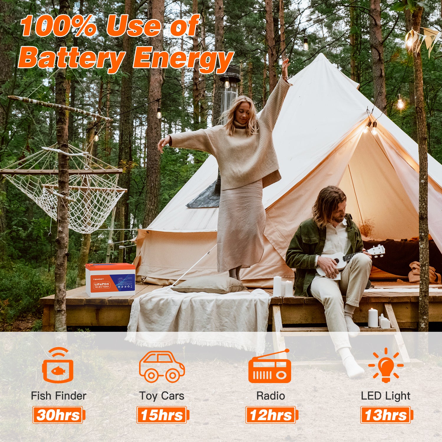 12.8V 12AH LiFePO4 Battery, Built-in 12A BMS, 5000+ Deep Cycle
